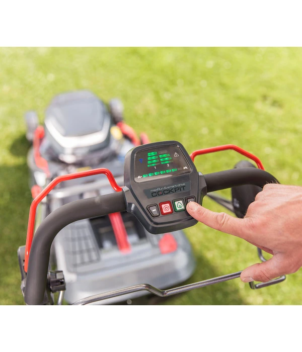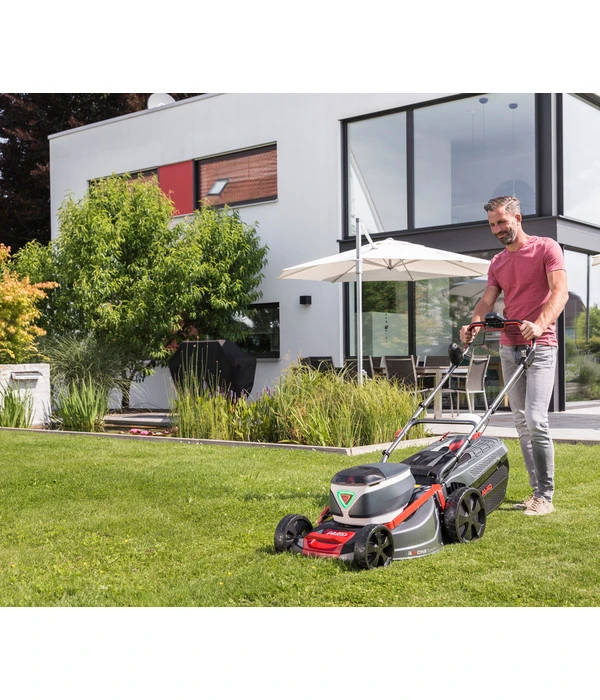 Mit dem Akku-Rasenmäher 512 LI VS-W Premium von AL-KO kehrt ein echtes High-Tech-Gerät in Ihr Zuhause ein. Das intelligente Cockpit hält Sie über alle wichtigen Statusdaten auf dem Laufenden und ermöglicht das bequeme Steuern der Geschwindigkeit. Wahlweise können Sie auch in den Eco-Modus für eine extralange Akkulaufzeit wechseln. Ein weiterer Baustein für ein langes unterbrechungsfreies Mähen ist die große Fangbox mit praktischer Füllstandsanzeige. Übrigens können Sie das Gerät auch mit der AL-KO inTouch-App koppeln, die Ihnen dann weitere smarte Features wie Servicefunktionen und einen Überblick über Ihren Mähverlauf bietet. Entscheiden Sie sich jetzt für den Akku-Rasenmäher 512 LI VS-W Premium und bestellen Sie noch heute!