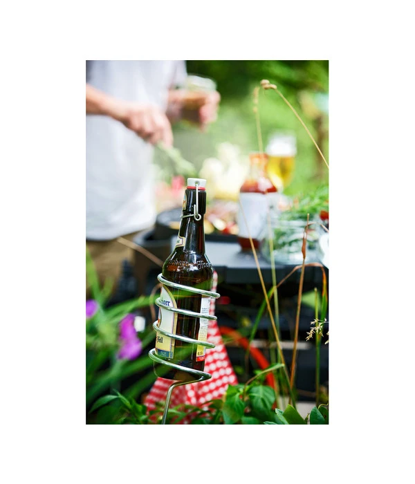So ist es mit genialen Ideen: Die besten Ergebnisse werden meist auf einfachstem Wege erreicht. Nur, diese Idee zu haben, ist alles andere als einfach. Wirft man einen genaueren Blick auf den bellissa Bierflaschenhalter, sieht man eigentlich nur einen Eisenstab, der unten eine Windung und oben eine Spirale hat. Wer nicht weiß, was dieses Utensil kann, hält es wahrscheinlich für eine Kletterhilfe oder einen Deko-Stab. Erst, wenn man weiß, dass die Windung unten am bellissa Bierflaschenhalter dazu dient, den Halter mit dem Fuß blitzschnell in den Boden zu drücken, erkennt man deren Nutzen. Steckt dann jemand eine Bierflasche in die Spirale, ist plötzlich alles klar.