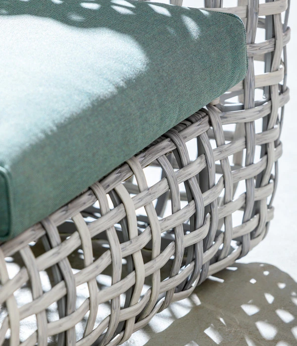 Das luftige Geflecht besteht aus einer modernen Kunstfaser, die wie das Naturmaterial Rattan kunstfertig von Hand geflochten wird. Darunter befindet sich unsichtbar ein Gestell aus Aluminium, das der Dehner Flechtlounge Bali die ausgezeichnete Stabilität gibt, selbst aber angenehm leicht ist, so dass Sie die Möbel locker bewegen und mal anders gruppieren können. Beide Materialien punkten aber mit besten Outdoor-Eigenschaften: Sie sind UV-beständig, regenfest und sogar schmutzabweisend, so dass zu der Outdoor-Tauglichkeit auch noch der Vorteil der Pflegeleichtigkeit kommt. Deshalb können Sie Ihre Dehner Flechtlounge Bali mit gutem Gewissen auch bei schlechtem Wetter draußen stehen lassen.