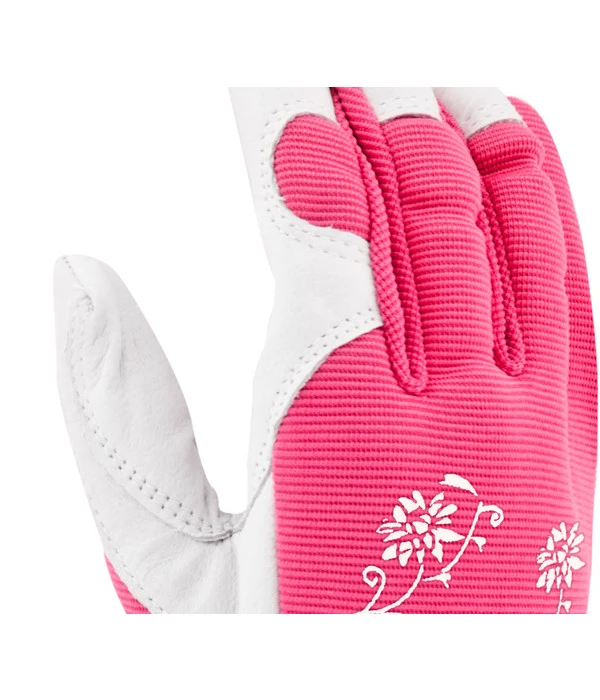 Wer sagt denn, dass Arbeitshandschuhe auch immer nach Arbeit aussehen müssen? Keiner! Der Gartenhandschuh Jardy wirkt eher wie ein edler Golfhandschuh und begeistert mit farbenfrohem Design. Außerdem wartet er mit einem zarten, floralen Dessin auf, das dezent aufs Gartenthema verweist. Das weiße Leder und der schwarze Part am Handgelenk wirken schlicht und edel. Gönnen Sie sich Ihren Gartenhandschuh Jardy für mehr Freude am Gärtnern und tragen Sie Ihre top gepflegten Hände vor und nach dem Gärtnern zur Schau.