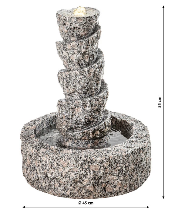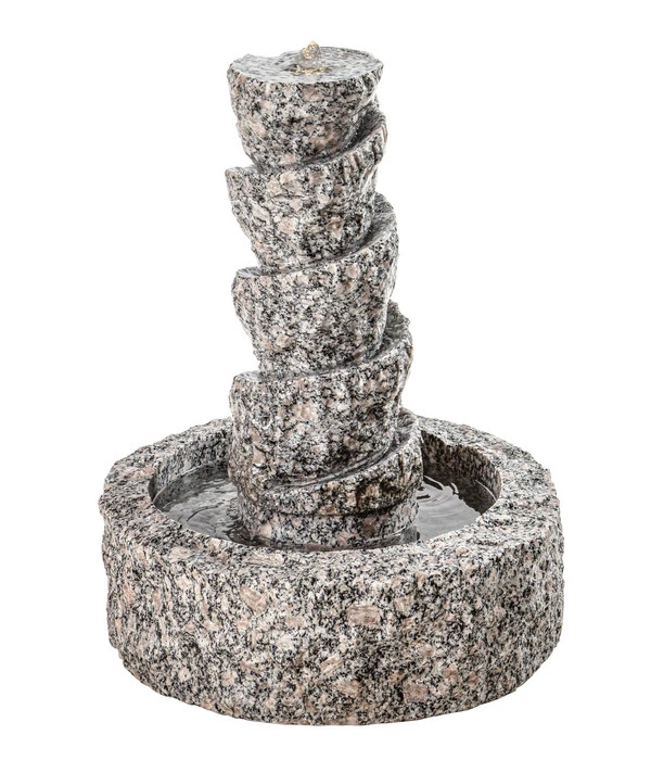 Wasser-Spirale mit Entspannungs-Effekt: der Granit-Gartenbrunnen Drill