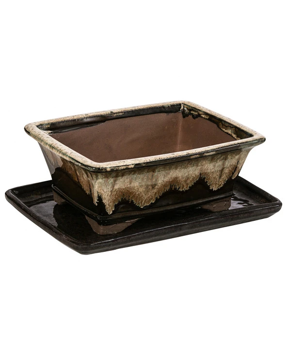 Wenn Sie auf der Suche nach dem perfekten Accessoire sind, um Ihr Miniaturbäumchen stilvoll zur Geltung zu bringen, dann ist die Dehner Kermik-Bonsaischale in Braun-Beige die richtige Wahl für Sie. Dieses Pflanzgefäß wurde aus langlebiger, glasierter Keramik gefertigt, sodass die Schale Ihren botanischen Schätzen für viele Jahre ein trendiges Zuhause bieten wird. Die zeitgemäße, rechteckige Gestaltung sowie die aufregenden Farbverläufe in warmen Brauntönen sorgen für gemütlliches, naturnahes Ambiente und sichern Ihnen bewundernde Blicke Ihrer Gäste.