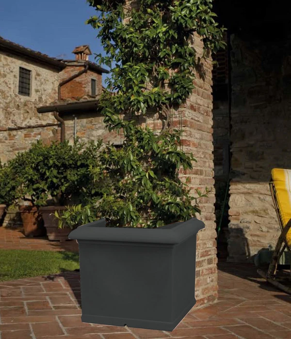 Der quadratische Kunststoff-Topf von Farmet New ist ein wahrer Alleskönner. Er eignet sich sowohl für den Innen- als auch für den Außenbereich und lässt Ihnen dank seiner zurückhaltenden Anmutung viel kreativen Spielraum bei Ihren Pflanz-Arrangements. Der Pflanzkübel besteht aus rotationsgeformtem Kunststoff, wodurch er ein geringes Eigengewicht hat und leicht zu bewegen ist. Zum Reinigen des pflegeleichten Topfes reicht ein feuchtes Tuch. Bepflanzen Sie Ihn mit winterharten Gewächsen, denn der quadratische Farmet New Kunststoff-Topf ist temperatur- und frostbeständig bei Vermeidung von Staunässe. Daher sollten Sie bei der Verwendung im Außenbereich ein Loch in den Topfboden bohren und den mitgelieferten Untersetzer verwenden.