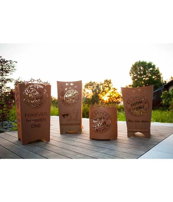 Seit der Spiel-Saison 1965/66 ist der FC Bayern München in der deutschen Bundesliga und glänzt seitdem konstant mit sportlichen Bestleistungen: Platz 1 in der Ewigen Tabelle der Bundesliga, Deutscher Fußballmeister, DFB-Pokalsieger und viele, viele andere Titel und Auszeichnungen konnte der Fußball-Rekordmeister einsammeln. Jeder Fan, der den Stolz auf seinen Club sichtbar demonstrieren möchte, kann das jetzt in seinem Garten tun – mit dem FC Bayern Feuerkorb „Rekordmeister“. Dieser coole Feuerkorb ist einer der offiziellen FCB Feuerkörbe. Er besteht aus stabilem, 2 mm dickem, natürlich gerostetem Stahl und ist in Bayern hergestellt.