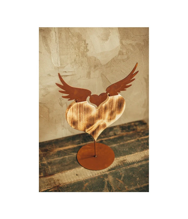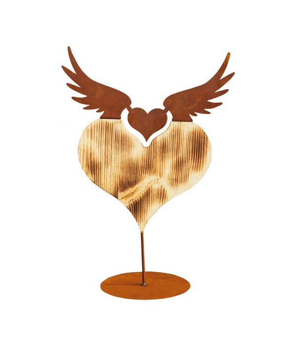 Gartenaccessoire mit Herz: Ferrum Holz-Herz mit Metall-Flügeln