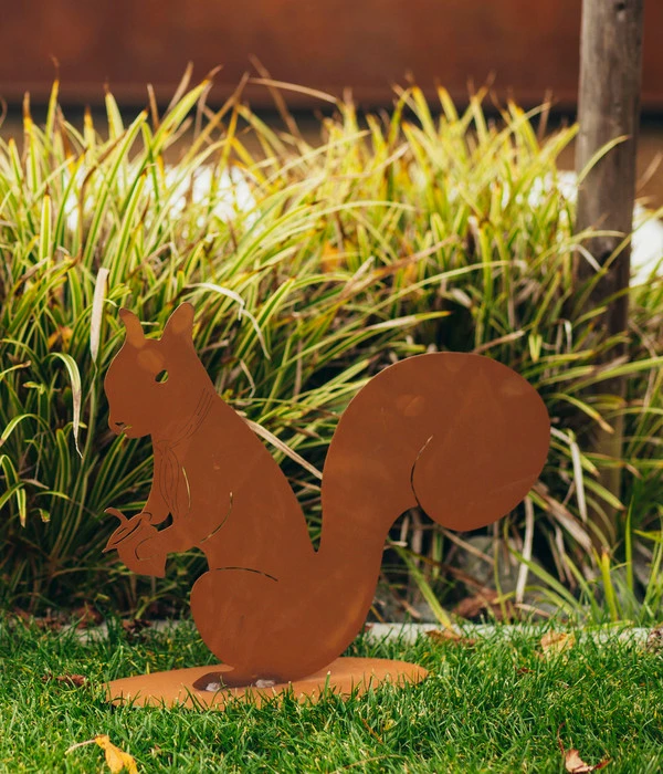 Das Rost-Eichhörnchen Felix von Ferrum wurde in hervorragender Qualität aus wetter- sowie frostbeständigem Material hergestellt. So sorgt es auch in den kalten Monaten für einen bezaubernden Anblick in Ihrem idyllischen Garten. Das nachempfundene Eichhörnchen ist auch wirklich zu niedlich anzusehen und wurde mit viel Liebe zum Detail in Deutschland gefertigt. In seinen Pfötchen hält es ganz stolz einen schmackhaften Fund. Am besten bestellen Sie sich das Ferrum Rost-Eichhörnchen Felix gleich heute, damit es schon bald Ihr Zuhause ziert!