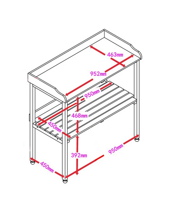 Belasten Sie nicht länger unnötig Ihren Rücken und die Gelenke, sondern erledigen Sie alle wichtigen Arbeiten in einer angenehmen Höhe. Der Gartentisch ist dafür ideal geeignet, denn mit seiner Arbeitshöhe von 90 cm können Sie auf diesem idealen Pflanztisch Ihre Gewächse umtopfen oder auch zurückschneiden und auf den Winter vorbereiten. Die verzinkte Arbeitsplatte bietet Ihnen ausreichend Platz, um mehrere Pflanzen und auch benötigtes Werkzeug gleichzeitig auf dem Tisch liegen zu haben. Damit während des Arbeitens nichts versehentlich herunter fällt, verfügt der Gartentisch über eine Umrandung mit Holzleisten an drei Seiten. Außerdem können Sie auch noch eine weitere Ablagefläche im unteren Bereich nutzen. Die Fertigung des Gartentisches zeichnet sich durch handwerkliche Präzision und ein hochwertiges Material aus. Das verwendete Spießtannenholz garantiert selbst bei regelmäßigem Gebrauch große Stabilität und Langlebigkeit. Doch nicht nur für die Gartenarbeit ist dieses Qualitätsprodukt geeignet, sondern auch zur Unterstützung beim Grillen und zur Ablage von Grillgut oder benötigtem Zubehör, damit die Gartenparty ein voller Erfolg wird.
