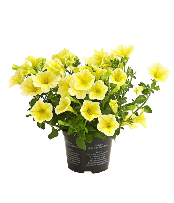 Für viele ist Gelb DIE Sommerfarbe schlechthin. Auf jeden Fall wird mit dieser beeindruckenden Hängepetunie auf Ihrem Balkon jeden Tag die Sonne scheinen, auch wenn sich der Himmel von Zeit zu Zeit in düsterem Grau präsentiert. Und an schönen Sommertagen werden die großen, leuchtend gelben Trichterblüten mit der Sonne um die Wette strahlen und schon von weitem auf sich aufmerksam machen. Durch ihren dichtverzweigten, kompakten Wuchs sowie die bis zu 1 Meter langen Triebe ist die Hängepetunie perfekt für die Bepflanzung von großen Kübeln und Blumenampeln geeignet. Sie werden sehen: Diese ausdrucksstarke Petunie wird ein toller Blickfang sein und Ihrem Balkon, der Terrasse oder auch dem Hauseingang ein sommerlich beschwingtes Flair verleihen.