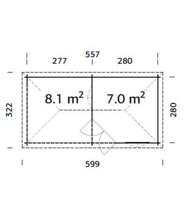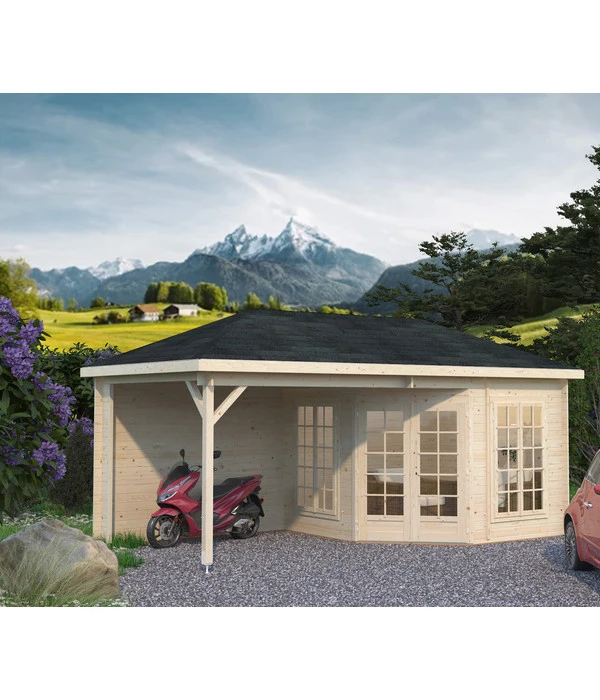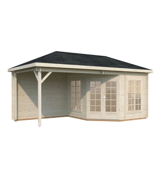 7 m² + 8,1 m² Freisitz, Nordische Fichte, 28 mm Blockbohlen, inkl. Montageset