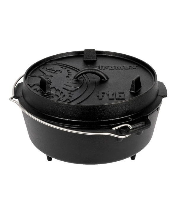 Der Dutch Oven aus dem Hause Petromax ist aus massivem Gusseisen gefertigt. Daher werden Sie lange Zeit Freude beim Kochen und Backen über offenem Feuer haben. Eine Kerbe im Bügel des Topfs sorgt zudem für ein sicheres Aufhängen über der Feuerschale. Am besten bestellen Sie sich jetzt gleich Ihren Dutch Oven des Herstellers Petromax und laden Ihre Freunde zu einem zünftigen Festmahl ein!