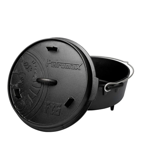 Das Kochen und Backen im Freien über einem Feuer ist Ihre große Leidenschaft? Dann gehört der Dutch Oven der Marke Petromax auf jeden Fall in Ihren Einkaufswagen! Erfüllen Sie sich mit dem Outdoor-Utensil Ihren langen gehegten Traum von Freiheit und Abenteuer! Beim Kochen und Backen Ihrer Lieblingsspeisen mit dem Dutch Oven von Petromax sind Ihrem Einfallsreichtum und Ihren Kochkünsten keine Grenzen gesetzt. Ob ein feueriger Chilli-Eintopf, ein würziges Gulasch oder ein anderes Gericht Ihrer Wahl, mit dem rustikalen Feuertopf bereiten Sie stets schmackhafte Speisen auf rustikale Art zu. Das Beste ist, selbst den Deckel können Sie zum Braten von Spiegeleiern oder von einem Steak verwenden. Dank eines Henkels lässt sich der Deckel des Topfes einfach öffnen.