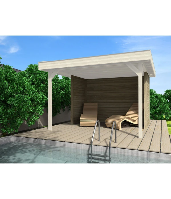 Für alle, die sich in ihrem Garten einen ruhigen und gemütlichen Rückzugsort gestalten möchten, ist die Weka Gartenlaube genau das richtige Objekt. Die Laube aus naturbelassenem Holz schafft ein ganz besonderes Ambiente und lädt dank ihrer edlen Optik zum Verweilen ein. Wände und Flachdach bestehen aus Massivholz und sind daher sehr robust. Der Aufbau gelingt einfach, denn als Dachbelag dient eine selbstklebende Dachbahn, die Sie sicher vor Regen und durchdringender Nässe bewahrt. Schutz vor Wind und Sonne, aber auch vor neugierigen Blicken bieten die massiven Seitenwände.
