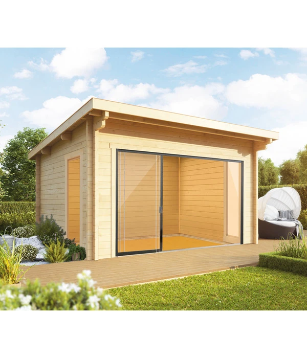 Seit Jahren spielen Sie mit dem Gedanken, Ihre Gartenanlage mit einem Holzhaus zu krönen? In das Sie sich solo oder zu zweit zurückziehen können, für eine kleine Auszeit vom Alltag; ein Haus, das aber auch groß genug ist, um darin mit der Familie und Freunden feiern zu können? Dann haben Sie mit dem Wolff Finnhaus Gartenhaus Trondheim 70-D XL inkl. Schiebetür links Ihr Traumhaus vielleicht gerade gefunden. Der moderne Look mit den großen Fenstern und dem schicken Pultdach harmoniert perfekt mit Häusern im Bauhaus-Stil, dank des hochwertigen Holzes strahlt es aber zugleich die anheimelnde Gemütlichkeit aus, die so typisch für die Holzhäuser in Skandinavien ist. Noch ein Ausstattungsdetail, das Sie sehr schätzen werden: An der Vorderfront hat das Haus eine stattliche Höhe von 256 cm, die für ein besonderes Raumerlebnis sorgt. Lassen Sie jetzt Ihren Traum wahr werden und bereichern Sie Ihren Garten – und Ihr Leben – mit dem Wolff Finnhaus Gartenhaus Trondheim 70-D XL inkl. Schiebetür links!